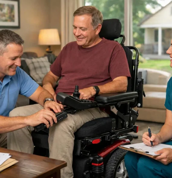 Wheelchair Specialists will provide an in person evaluation, including measurements and recommendations.